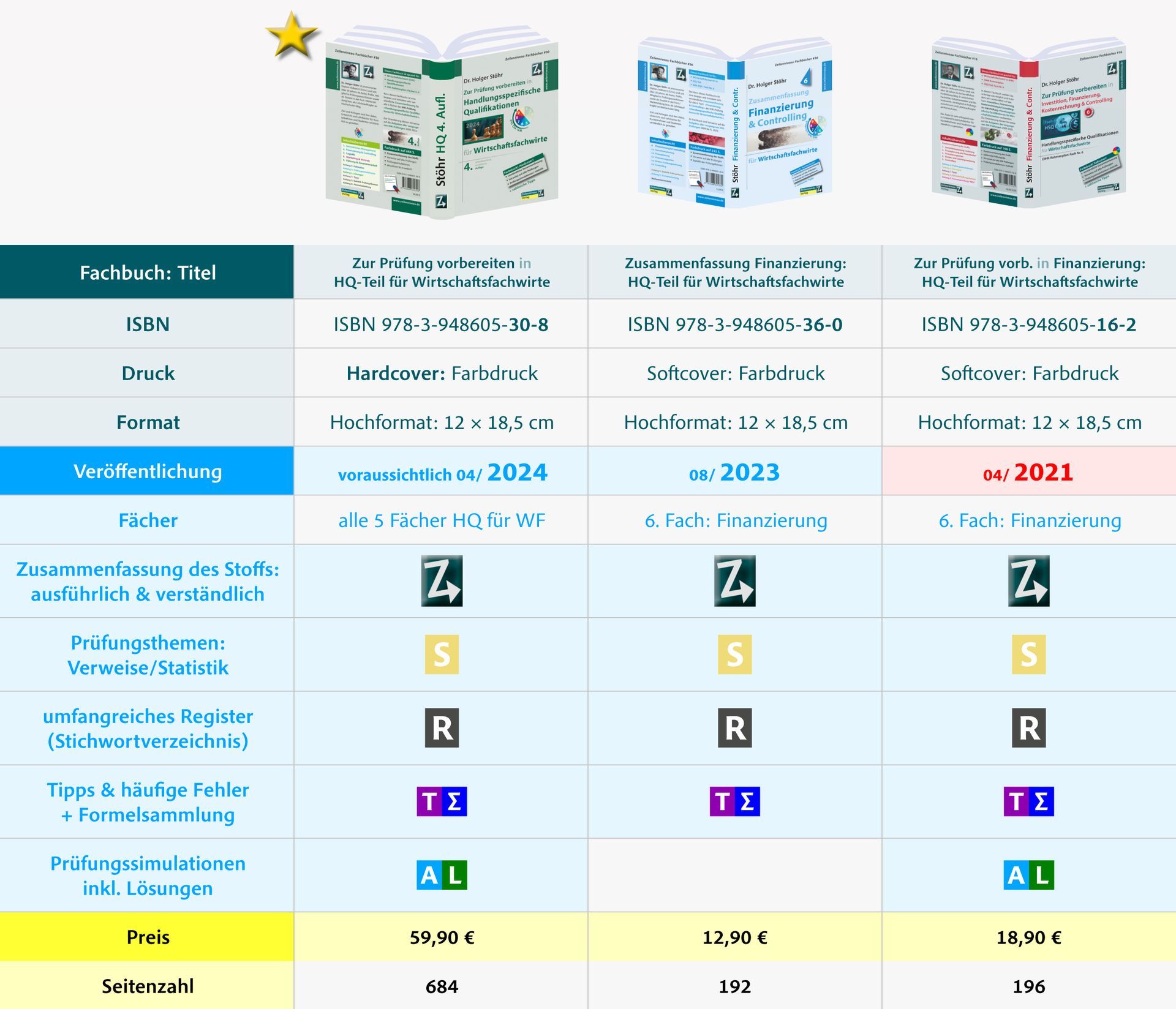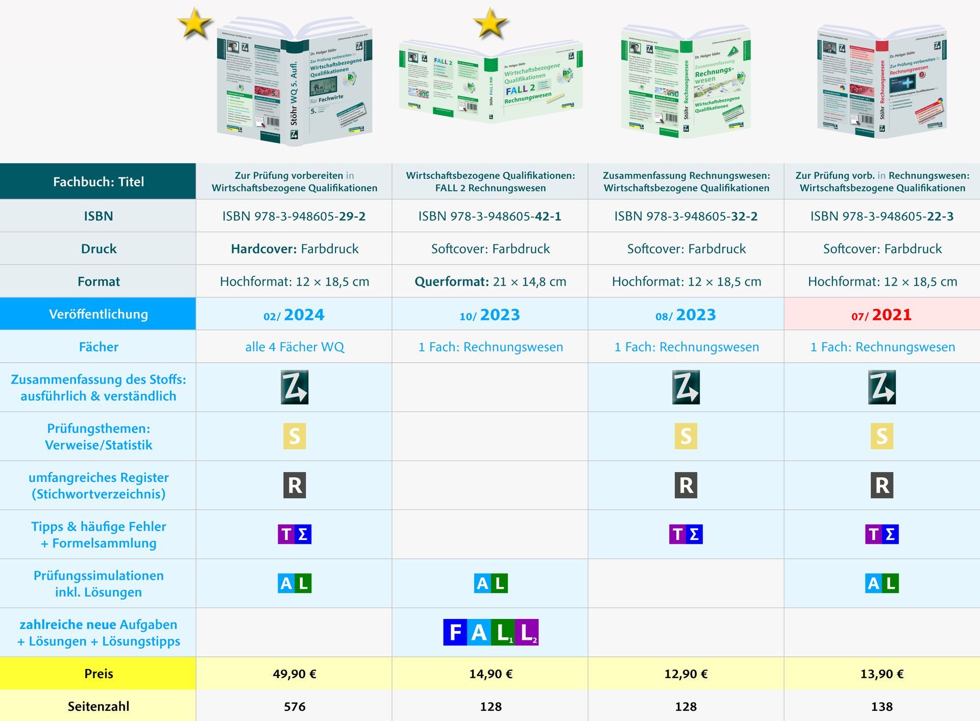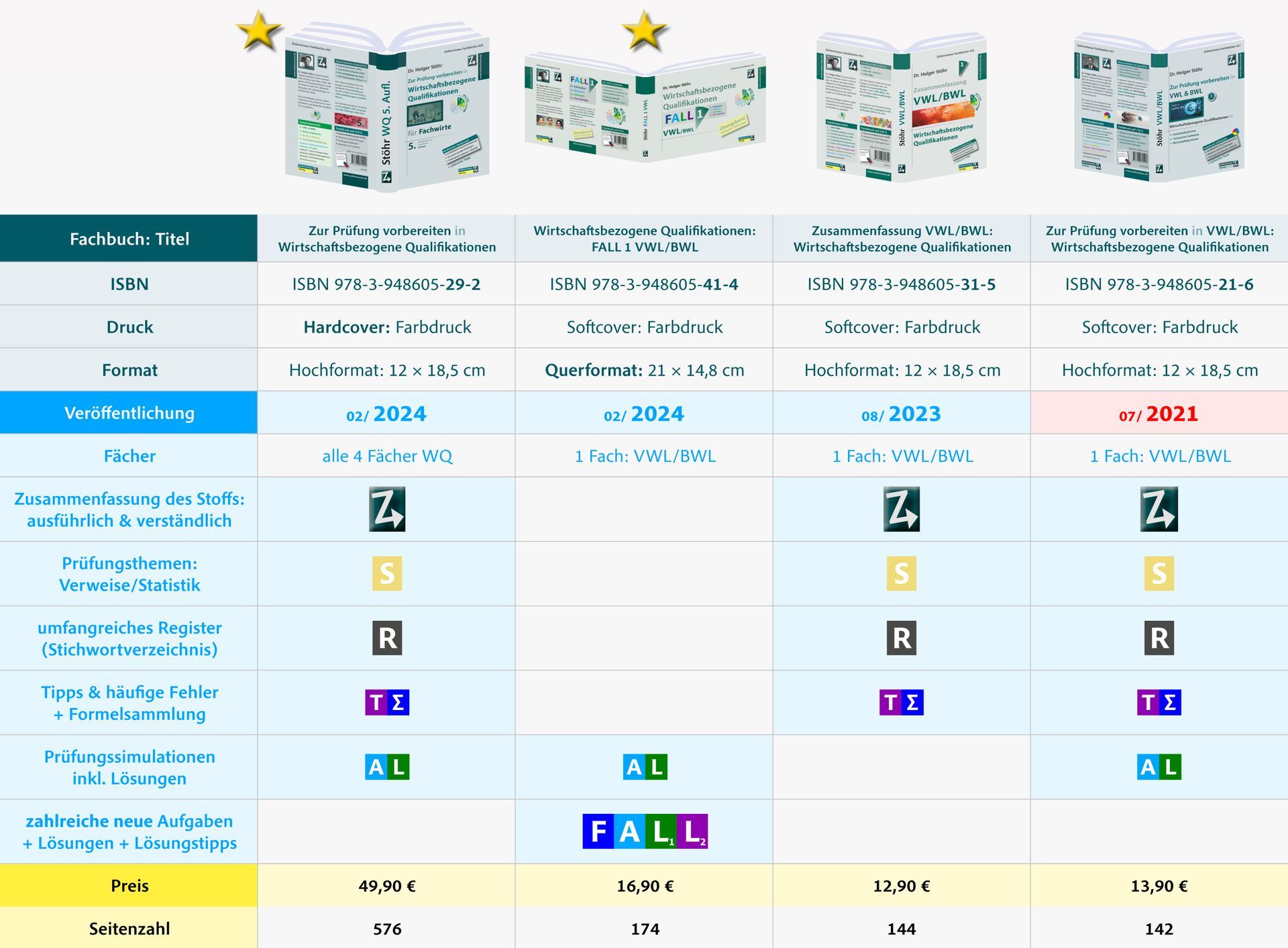 29. Februar 2024: Tabellen zum Vergleich der Fachbücher